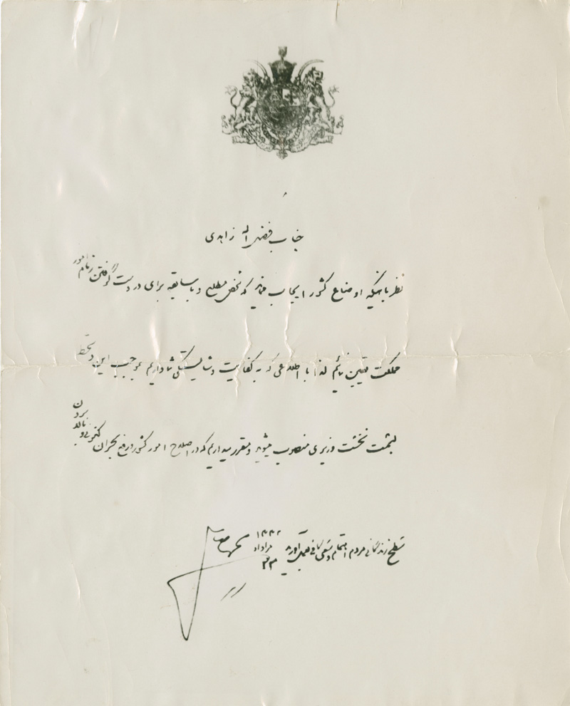 تبریک به زاهـدی گفت: «جای مسـرت اسـت که دولـت جناب آقای