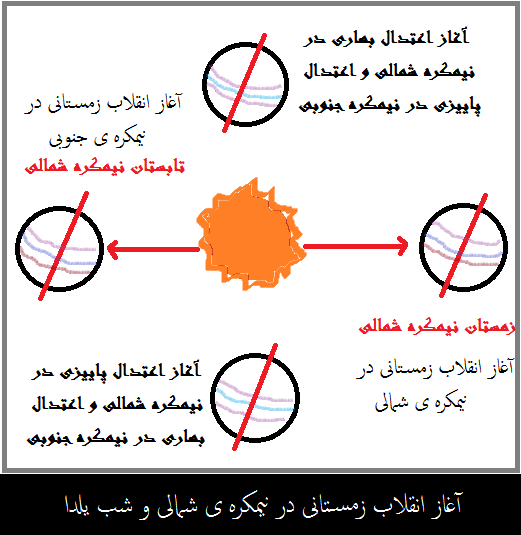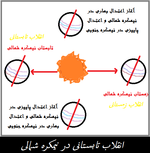 به همین ترتیب، در آغاز تابستـان در نیمکـره ی شمالـی یعنی وقتی