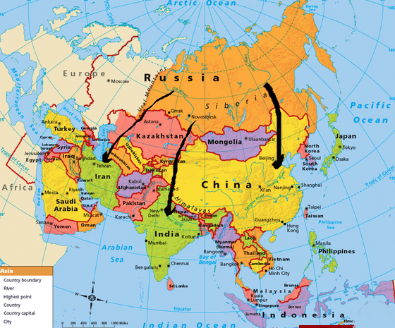 کیلومتری بین غرب سیبری تا ایران را می پیمودند و به سـواحل