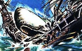 موبی دیک هم صحبت به میان می آید. ناخدایی به نام اهب با سماجت